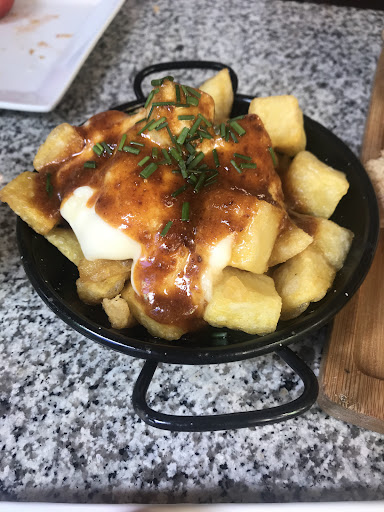 We ordered their Jamón iberico con pan con tomate and patatas bravas. Our tour guide showed us the traditional way to have Jamón iberico con pan con tomate and it was really fun to create your own. They well fried the potato and it was soft and creamy inside with crispy layer, the allioli with gravy sauce on the top was amazingly tasty and addictive which made us buy one bottle of allioli as souvenir.