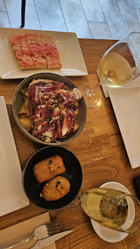 Catalan staples were all on point— potato bravas, padron green peppers, bread w/ tomato and olive oil, and Iberian ham. All delish! The garden mix salad had an amazing dressing and olives were complimentary. The vegetarian in our group was thrilled with the quality and options.