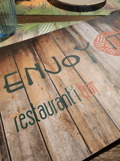 🍹Disfrutamos de mojitos normales y de sabores, caipirinha, piña colada, el cocktail especial de la casa llamado Enjoy, y alguno sin alcohol para los que debían coger el coche. Y no solamente un cocktail por persona no, tiramos la casa por la ventana, pero la ocasión lo merecía!