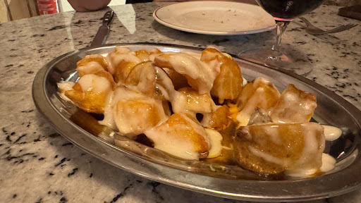 Nos miramos sin entender nada. El tono era rarísimo. Empezamos a cenar y todo iba según lo rodado, para mi gusto podrían haber mejora, o cambios, pero está claro que la cocina está trabajada. Creo que no es el punto donde entrar, al final es una cocina catalana, sencilla y correcta que con el precio final que pagamos nos encajó, fricandó correcto, rusa buena, tortilla para mi gusto le falto un punto de sal, pero muy correcta, ensalada de boquerones buena, la gilda acompañada de un queso semi (yo no soy muy fan, pero estaba buena, las conservas con las que estaba hecha eran buenas). Pero aún estaba por venir el escándalo.