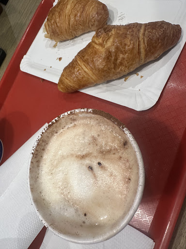 Read moreI ordered a coffee and a small pie after asking the staff if it was vegetarian. They told me yes, but then I found small pieces of some pink things that looked a lot like meat... I asked the staff what it was and they could not tell me! They really had no clue and no indication! They could not give me a ticket for my order either! 4 euros and some wasted... Otherwise, it was a nice place to wait in the station. I should have ordered a coffee only...