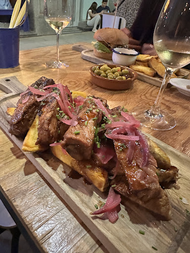 I was walking Las Ramblas, passing a bunch of shawarma and kebab spots that weren’t exactly ideal for my jamon-filled stomach. Kept walking, and somehow wandered down a side street and found The Fat Cat. Not super busy, but the smell of fresh food and the sound of good music drew me in.