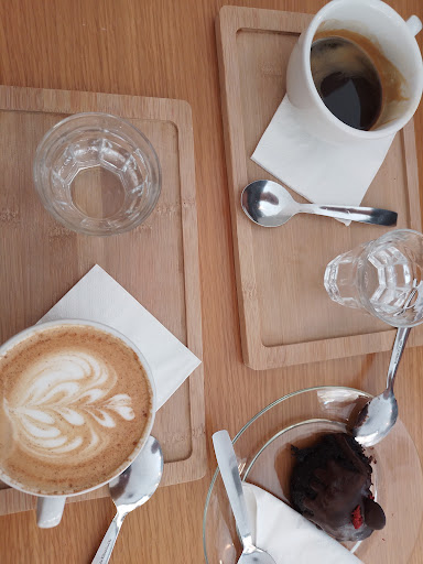 This is about my personal experience: we went looking for a quiet place to have a cold drink and enjoy some a/c in this heat wave. Unfortunatelt this coffe shop takes its name very seriously and has barely nothing apart from coffee. Not a worry, we'll get water...which comes in refillable bottles. That's okay. BUt then...33ºC outside and no A/C with doors open makes it for a not so comfy place to enjoy your...water and cookie (the cookie was good by the way) The girls running the place were very nice and pleasant. I guess it's just not the place we needed at such a time, it was also far from quiet...