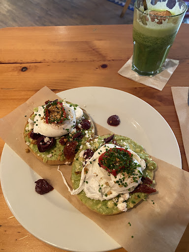 Read moreI had the Mediterranean bagel and although the food looked absolutely beautiful, I was kind of disappointed on the bagel itself because it was extremely hard as in: or it had been lightly toasted a long time ago or it had been lightly toasted the day before. The combination, however, of the flavors in the food was good. I also asked for a popeye’s punch and asked if there was any alternative to the soya milk and there wasn’t. This makes me think they might have the smoothie premade as well or they don’t have a soya milk replacement which isn’t great if you are intolerant (although there were other options on the menu without soya). Overall enjoyed it but I don’t think I would go back. Perhaps just a bad day, not sure ! Also, as mentioned, food looked beautiful but the paper under the food eventually ripped, so I pushed to the side to not eat the paper by accident, perhaps the paper is just an extra that is not needed, although I...