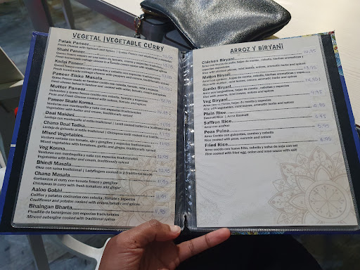 What an amazing restaurant to go to! The menu is extensive from tapas to burgers to Indian cuisine! My husband had the paella and I actually had a mutton curry and Naan bread. Now, I know what you are thinking...why come to Spain and have an Indian dish, however, I can honestly say the mutton curry was the best curries I have had since being in Europe! The staff were so helpful even though they struggled with English. They kept checking on us to make sure we were ok and happy. Our waiter, Vely, was super lovely and made us feel very welcome. We had alot of food (tapas x 2, burgers and fries (for the children) a massive paella, my curry and Naan, 2 massive beers, soft drinks all for approx 60€. will definitely recommend...