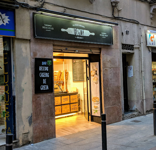 The only thing this place lacks is the greek flag 🇬🇷, as it is, it's like the best consulate for Greece, for her food and products. I don't know if there exists another shop of this kind in Barcelona, I do have done my research and this is the only one I found. Of course, now and then one discovers in the Spanish supermarkets some isolated greek products, some yoghurts, feta cheese, some tzatziki, olives and there even are pitas in a stand in the Boqueria. But in Furnos one finds everything together. Furnos means bakery in greek, but this one, is more than that. You can find on sale in the shop the original imported yoghurts, not the 'estilo griego' ones sold in Spain and if you try them, you too will understand the difference between the 'estilo' ones and the real thing. I have tried the various desserts, like baklava & kataifi, they are delicious, but be forewarned, they are very sweet, as we Greeks are sugar addicted. The pastries are similar to the best ones made in Greece. Apart from those calories bombs, there are other delicacies with less guilt involving. Above all, be sure to try the pita with spinach or feta cheese. It's a beloved greek speciality, very tasty and filling. You can see how they look like in the photo display here in the Google maps. Warmly...