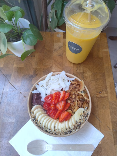 Read moreA very sweet couple is running this place, we were with a group of 4 and all took an acai bowl, some also a smoothie, I took mother in law's tongue acai bowl with ballon flower smoothie, both were amazing 😍🤩 if you're getting a smoothie getting a small bowl is enough, one of us got a big bowl with an extra ingredient, they managed to get through - it was a big breakfast! They also have coffee and matcha drinks for takeaway which is perfect for a day of sightseeing afterwards. This gluten free vegan place is such a wonder, a paradise 6 minutes walking distance from sagrada...