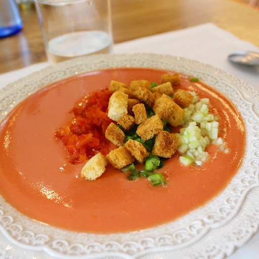 As part of the menu del día, your get your choice of an appetizer, main and dessert for only (19.50€). I got the gazpacho for the app and it was the star of the meal. The soup was poured tableside from a cute little teapot and then you get to choose your toppings which is also served tableside. The gazpacho was cool, refreshing and surprisingly filling and thick. I liked how the red and green peppers added sweetness while the cucumbers added a lighter flavour and the croutons gave the dish some crunch. Definately fulfilled my gazpacho craving.