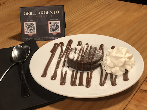 I had the opportunity to dine at Grill Argento twice in the past week while participating in an event at the Palau de la Música Catalana, which is nearby. Both were very happy experiences. I had a late lunch there, and was grateful that they were open then. The service was attentive, professional, and friendly. My Grill Argento Salad, with caramelized goat cheese, walnuts, raspberries and blueberries, was delicious and very reasonably priced. Later that evening my companion and I had reservations for dinner. We both adored our meal. We shared a medium-rare entrecôte, a Neapolitan Milanese, a garden salad, and grilled vegetables. For dessert we shared a chocotorta, a sort of parfait layering chocolate cookie crumbs, mascarpone, and dulce de leche. Once again, the service was superb.