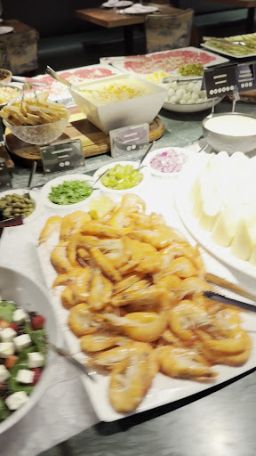 The feast begins with a very rich buffet: a wide selection of salads, seafood, cheeses, cured meats, hot dishes, sides, and sauces â all fresh and beautifully presented. After about fifteen minutes, the waiters start serving meats straight from the grill: picanha, entraña, alcatra, fraldinha, baby beef, premium ribs, longaniza, chicken hearts⊠Every cut was juicy, perfectly grilled, and carved right at the table. The waiters move quickly from the grill to the tables to ensure the meat is served hot and fresh. Portions are small, but this is perfectly intentional â throughout the evening, the waiters will return dozens of times, offering an impressive variety: beef, veal, lamb, chicken, black pudding, sausages, ribs, and more. Everything was absolutely delicious, and the waiters keep asking âmore?â until you finally admit defeat. We hadnât expected that outcome, but we were so full we had to wave the white flag!