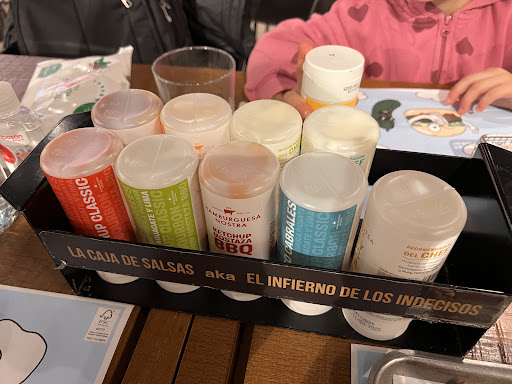 ==Comida caro y desastrosa, camarero pasivo-agresivo. ¿Cómo pudiste ir peor? === Cuando entré, me acerqué al camarero (no estaba ocupado con nada en un pasillo vacío) y traté de preguntarle si tenían alguna hamburguesa sin tocino y cebolla (olvidé mis gafas de lectura y no pude leer bien el menú). El chico insistió en que primero tenía que ir a la mesa, luego vino y me hizo preguntarle nuevamente, solo para decirme que tenía que elegirlo del menú. excelente. Luego me trajo ESTO. En particular, el lugar estaba casi vacío, por lo que no puedes disculpar esto con un cocinero que tiene prisa, etc. Le pregunté si honestamente cree que es lo que está en la foto, se burló de mí y dijo: por supuesto que lo es. , Cuál es el problema. ----- bueno, el problema es que tieneis este lugar en un centro comercial, con un cocinero y un camarero odiándose a sí mismos, a su trabajo, cero respeto por los clientes, etc. - y por supuesto la comida TIENE que ser una broma en ese lugar, y muy diferente a lo que te diga la imagen. Pero hay algunos límites para eso.Chicos, sois un absoluto desastre y la comida tuya es una basura.