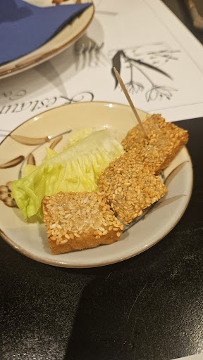 Read moreFuimos a comer el menú de mediodía siete personas con reserva previa. El menú consta de aperitivo, un primero, un segundo, un tercero, arroz bebida y postre. El personal muy eficaz, solo sentarnos ya nos pidieron la bebida y nos trajeron un aperitivo de pan frito con sésamo el cual estaba muy bueno y crujiente. Para elegir el primer plato tienes tres opciones; musi de pato, rollitos o sopa. Yo me pedí la sopa pero no tenía mucho gusto, la verdad que me decepcionó un poco. El segundo es fijo y no se puede elegir. Consta de 4 gyozas acompañadas de una salsa de mostaza. En cuanto al plato principal/tercer plato, hay variedad de opciones de donde elegir. Yo elegí el pato con verduras y estaba delicioso: las verduras estaban muy bien salteadas y tenían mucho gusto, el pato estaba bien cocinado y la salsa riquísima. Para acompañar todos los platos principales, te ponen arroz para compartir. Recomiendo juntarlo con la salsa de los platos, porque es lo más bueno de los platos principales. Las raciones son correctas, pero con tantos platos, aperitivo y acompañantes, acabas lleno. Para el postre no había tantas opciones; una bola de helado de vainilla, chocolate o coco, macedonia un poco pobre en variedad, café o manzanas caramelizadas. Recomiendo esta última opción pues es un plato original y estaba rico. Sin duda lo recomendaremos...