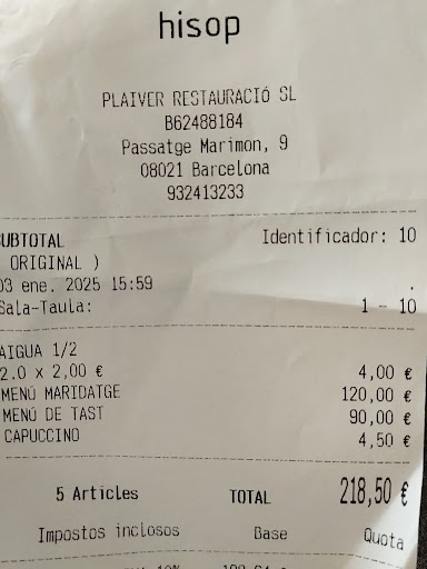 Read moreI recently had the pleasure of dining at Hisop, a Michelin-starred restaurant in the heart of Barcelona, and I must say, the experience was exceptional in every way.