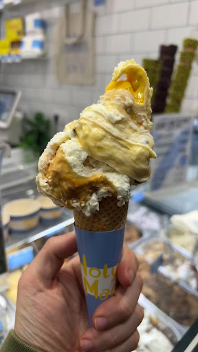 Is there a bad time for ice cream 🍨❓ Nooooo❗ It's always ice cream time 🕕 for me. No matter if it's Summer 🥵 or Winter 🥶, day ☀️ or night 🌙, hot 🔥 or cold ❄️, ice cream is always welcome. 😋 So why is it so difficult to find an ice cream parlor at night in BCN? 🤔 A few days ago, we had dinner out on Passeig Sant Joan with some friends at an Asian place and decided to eat an ice cream somewhere else for dessert. But, according to Maps, most of the places around were closed except one. And when we went there it was still closed. 😠 So I looked again and found Holy Madre, at Urquinaona, even further from the restaurant. I was reluctant cause had already been to another Holy Madre branch. I liked it but, as you know, I'd always rather try 🆕 spots. But my son's mood was at play there! 😅 Asi in many Argrentinian 🇦🇷 ice cream parlors, they don't offer too many flavors but I still found 2 I liked: pistachio (of course!) and dulce de leche with alfajor. 😋 The pistachio one was good but quite weak. The dulce de leche one was tasty, it really tasted like dulce de leche but it was not too heavy nor too sweet, yet I couldn't feel the alfajor. The waffle of my cone was good. 👍 The texture was great (Argentinians do know how to make gelato! 👏) but the cream melted quite fast even though the weather wasn't hot that day. The portions were generous, even for the smallest size (1 or 2 scoops) therefore the prices were not too high (€3.8, €4.8 and €5.8). 👍 The clerk was efficient but a smile would be nice from time to time. Also there's no need to hide every time I take my phone out for a pic. 🫣 I'm only interested in the cream! 😇 Holy Madre is a solid option when you're tired of Italian gelato 🇮🇹 and they're open late, which is too unusual and has to be rewarded. 🙏