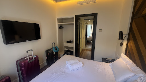 My room was on the smaller side, but totally functional and thoughtfully designed. It included a proper space to store clothesâwhich isnât always a given in boutique hotelsâand the high ceilings made it feel more spacious. Everything was spotless. The bathroom layout was a bit quirky (the shower opened right into the hallway), but it wasnât a big deal and everything worked well.