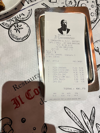 Il Commendatore Barcelona is one of the oldest pizzerias in Barcelona, having opened its doors in 1974. The restaurant has a charming and original ambiance, is a great place to enjoy a delicious and authentic Italian meal in Barcelona. The restaurant has a charming ambiance, professional service, and a wide variety of pizzas, pasta dishes, and other Italian classics. I highly recommend checking it out if you are in the city.
