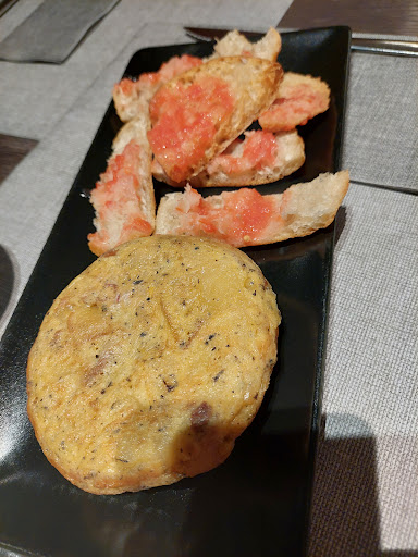 Llamamos para reservar un jueves a las 22h. Nos dijeron que solo reservaban hasta las 21.30h y les explicamos que a esa hora salíamos de trabajar, que llegaríamos más hacia las 21.45h, tomaron nota. Llegamos 21.50h y habían mesas de sobra, una chica amable nos ofreció la nuestra u otra más cerca del escenario, nos quedamos con la primera porque si no la música estaba muy fuerte y no puedes hablar mientras comes (aún así la verdad que el volumen seguía siendo alto y teníamos que hablar fuerte para oirnos). Pedimos algo de picar y hamburguesas. Pido una tortilla de 10€ pensando que quedaría llena y me encuentro una tortilla del tamaño de un puño, a parte de seca. Digo bueno da igual, ya lo compensaré con el postre. Sobre las 23 se acercan a recoger la mesa y le decimos al chico que nos gustaría pedir postre (ya que nadie pregunta) y para nuestra sorpresa dicen que la cocina está cerrada ya. Con tono de broma le decimos que cómo nos hacen esto de dejarnos sin postre si es un momento meter un coulant en el microondas, pero nada. Aquí aparece el camarero de rizos borde que nos trae la cuenta directamente diciendo que van a cerrar caja. Le explicamos lo de los postres y nos echa en cara que hemos llegado tarde (cosa que ya avisamos en la reserva) y cenado lento (parece que hay que poner un cronómetro ahora), a lo que respondemos que ya habíamos acabado hace rato pero nadie se acercó a recoger ni informar de que iban a cerrar cocina y ofrecer la posibilidad de postre. Pagamos y al levantarnos el camarero borde deja 4 chupitos en la barra (habíamos bromeado que ya que nos dejaban sin postre unos chupitos ni que sea, quién no te pone chupitos de limoncello gratis hoy en día?). Total que deja 4 chupitos cuando éramos 5 personas cenando y dice "una de vosotras no está invitada de mi parte".