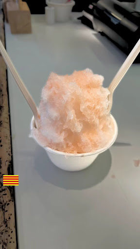In BCN and missing Japan 🇯🇵? Read this 👇 My wife and I first went to Japan 15 years ago. My memory of facts is bad but I remember most of my feelings. I also remember a few moments that, for some reason, are special to me. In particular for that visit to Tokyo, I remember a day we were walking towards a temple with a friend we met there who was explaining how Japanese deal with religions. First off, the conversation was super interesting. And the temple was beautiful. But we also walked across a street festival where our friend treated us to kakigori 🍧. I had never heard about kakigori before. For those who don't know, kakigori basically is shaved ice 🧊 on the top of which some syrup and eventually some condensed milk are poured. Then you can add as many toppings as you wish. But mine was only ice and syrup. I don't remember the flavor but I remember I loved the concept, and the preparation fascinated me. 🤩 A few years later a place called Kakigori opened in BCN. No need to explain what they sell, of course. I was so thrilled when I saw that! 🥳 And in the first couple of years, I went there so many times! As soon as I could I also took my son there. He's in love 💙 with kakigori and the place. But I don't like it as much now... The thing is I've had the opportunity to try excellent kakigori, made by Michelin star chefs. So now, this kakigori, which is just ice and syrup prepared in a few seconds, is not as fun anymore. 😔 I bought this peach kakigori for my son a few days ago. It was as good as peach 🍑 syrup can be, but also sweet as peach syrup can be. I'm not sure it's my thing anymore... 😓 €3 per kakigori sounds like a fair price, not so much for the ingredients (ice and syrup) but for the service and the machinery.
