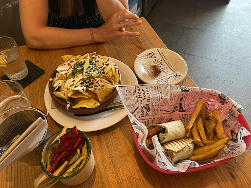 Read moreWe passed by maybe three times and terrace was always full. Inside of the bar is really big, so check it before you try another place. We were not exactly that hungry so the order was not full of food. Croquette is must try if you are on Barcelona - ham and cheese was our option and it was delicious! Continuing with baked nachos - comes in medium sized cooking basket baked with cheese, beans and jalapeno, topped with guacamole.. again, another must try if you visit this bar. We tried a lot of this stuff on our visit in Barcelona and this one was on the top - not too many taste combinations, just exactly what you need and expect from this dish. For something “more like a food” we had a one smoked salmon wrap. Comes with homemade french fries and there is simply nothing to complain about, its just exactly what you expect from it with double the taste. To mentioned the stuff, we got some trouble eating the nachos from the basket. Just like that, with no task, waitress brought as another plate - and that was during her dinner break time. P.S. design and the feeling of the toilets is the real stuff! Yeah, even such a thing like a toilets can...