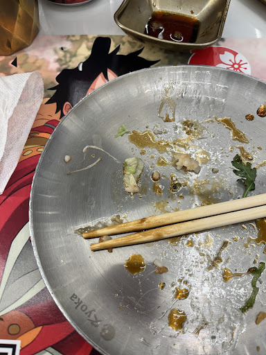 Lo peor es que se ha llenado la sala, con un sonido ambiente difícil de soportar y que no permitía tener una conversación a un tono "normal"; han tardado muchísimo en servirnos (hemos salido 2 horas más tarde, y éramos solo 2 personas); y hay platos que no tienen nada que ver con lo que se puede ver en las fotos de la carta online (véase las 2 alitas de pollo que no son rojas, el pollo teriyaki que es primo-hermano de lo que aparece en la carta, y el plato de pato al estilo japonés que es un tercio de lo que aparece en la foto de la carta online)... Además, el personal de cara al público está muy lejos de ser mínimamente agradable.
