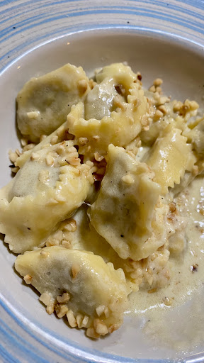 For mains, we shared the plin de carne—an absolute highlight. The pasta was so gently made, melting in the mouth, and beautifully paired with a rich parmigiano sauce. The ravioli filled with potato, burrata, and tomato was equally memorable—comforting yet refined.