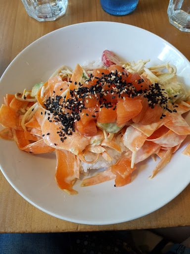 Soups, poke bowls, burgers & grills, plus juices & cakes, at a bright, unpretentious bistro/cafe.