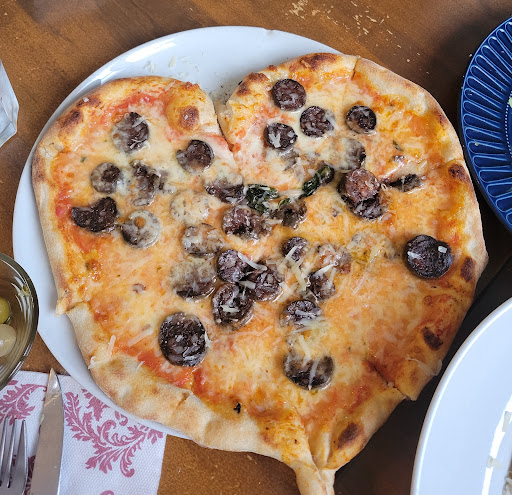 Avui ha estat la primera vegada que hi venim. Hem demanat una pizza per a cadascun. Jo he demanat la Pizza Tieta, amb cecina de León i tòfona, una delícia. La massa és ben lleugera i ben cuita, no es fa gens pesada. També hem escollit uns vins de la carta i hem pres una copeta. No et fan comprar tota l'ampolla i si vols vi de la casa, per veure amb gasosa, també ho pots fer!! Ens ha costat, a tots dos plegats, menys de 50 euros. A més, hem quedat ben tips, motiu pel qual no podem valorar les postres de l'indret. Ens hem endut el 1/4 de pizza que ens ha sobrat en una capsa, molt adient.