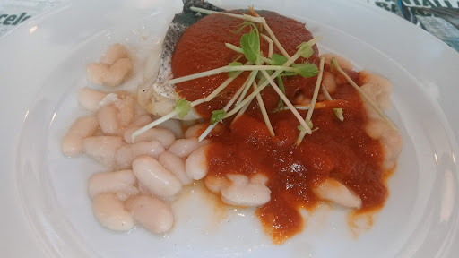 Read moreEsta en un local grande y diáfano, decorado con mucha gracia donde, a pesar de la cantidad de gente comiendo, apenas oyes las conversaciones de los comensales de alrededor. Las mesas están suficientemente separadas. Incluso aunque compartas con otras personas una mesa larga, la simple silla de separación ya hace que te sientas como si estuvieses sólo ahí con tu pareja de comida. Asombroso! Otro detalle que aquí (en España en general) es bien extraño encontrar es que en la mesa te pongan agua!!! Lo he visto en muchos restaurantes de Europa pero aquí jamás!!!! Eso para mí ya se merece un 10 en calidad, servicio y todo. No muestran esa usura de otros restaurantes que, si les pides un vaso de agua te miran con desprecio o, incluso, te lo cobran. Bravo chic@s, eso dice mucho de vosotr@s. Por último la comida y el servicio. Ambas cosas impecables. Comimos del 10. Platos muy sabrosos, nada escasos en contenido y visualmente muy bien presentados (vajilla, disposición del producto...) Dejo algunas fotos aunque, no todas las que hubiese querido hacer, principalmente porque nos poníamos a comer tal y como llegan los platos a la mesa....