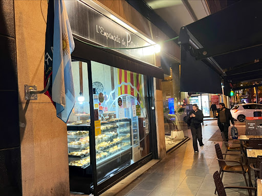 🏢 Ambiente: situado en una calle con abundante tránsito de coches y peatones, llama la atención el escaparate, muestra cientos de empanadas artesanales argentinas y también pizza que están sobre la vitrina a la luz de las lámparas que cuelgan del techo. Llama la atención porque tienen buena pinta, aunque las pizzas están expuestas, podrían estar mejor. Pienso que este es el gran reclamo del lugar para atraer transeúntes con hambre. 💡El interior es viejuno, tiene como mínimo tres tipos diferentes de iluminación entre luz blanca y cálida, además de otras decorativas. Mezcla en el interior bancos con mesas de bar… las paredes están decoradas con cuadros de citas bíblicas y otros elementos que evocan los campos argentinos. Las paredes están desgastadas, falta pintura y la iluminación no ayuda, no invita a entrar, pero miras las empanadas y das el paso al interior. En el fondo, una televisión con vídeos de YouTube con música chill out. Necesita una reforma urgente, dejarlo más despejado… limpio, posiblemente sea la palabra.