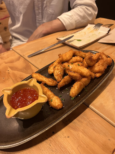 Great atmosphere, food, and staff. A reservation is recommended, but we were able to get in twice without one. This was the only restaurants we went to twice the whole time we were in Spain. I could not get enough of the prawn tapas. Mmmm! Our first encounter with the staff was a bit a cold shoulder, but we (as service workers too) understand how hard food service is these days, so we were patient. We were rewarded with a great experience and awesome food.