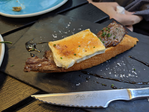 Papas bravas were no-nonsense, deftly executed. Grilled scallops on greens with a hint of maple - genius! Tdenderloin bite with grilled goat cheese very tasty. The pastry that looks like a napoleon (sorry, forgot it's name) was delicious with very light pastry layers and almond cream