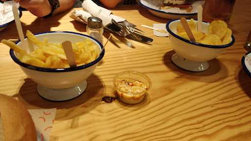 Read moreNo me gustó la experiencia. La carne de la hamburguesa no es de calidad premium, la combinación que yo escogí estaba bien pero los ingredientes a mejorar. La atención es pésima, hice el pedido en terraza, luego entré al salón y en el salón se me sirvió todo y consumí todo dentro del local. Me han cobrado el 10% de cada producto aunque haya comido dentro del establecimiento, incluso fui yo a acercarme a la camarera para pedir que por favor me llevara a mi mesa mi hamburguesa que tenía más de 12 minutos bajo la lámpara roja. El lugar no estaba lleno, de hecho era yo la única persona adentro y me hicieron esperar, y encima tuve que pagar el 10% de cada artículo como si estuviese afuera. En fin, hay muchas cosas por mejorar, como dar la preferencia a los clientes, porque me he acercado para reclamar el porqué del cobro del 10%, y solo me han dicho "lo siento, el pedido se tomó afuera y no se puede revertir"... El establecimiento es feo, nunca entendí el concepto, o la idea que quieren transmitir. ¿Cuál es el concepto? Troncos de árboles, espátulas en la pared, buzón de correo en la cocina...sin duda alguna han perdido...