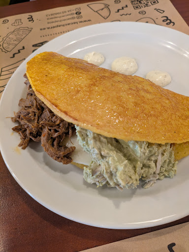 Read moreThis is definitely my favourite restaurant in Barcelona! It has a very nice ambience and decor. The staff is very friendly and fast. But the greatest thing is of course the food. What I appreciate about La Cachapera are the rellenos (stuffing) of their cachapas. There are plenty to choose from and they also have many vegetarian ones (and it is not just queso de mano like some other Venezuelan restaurants). I tried the cachapa mixta vegetariana which comes with queso de mano, caraotas (black beans) and avocado and it was delightful. The queso de mano was just how it should be, firm, just slightly melted and with the right amount of saltiness. It combined perfectly with the caraotas and avocado, a really nice blend. The portion was also very big (including the avocado), it was more than enough for one person. For drinks they have most drinks you could get in Venezuela, malta, frescolita, chicha, papelón, so there is a lot to choose from. The prices are also very reasonable. Everything was perfect! Thank you. I will be happy...