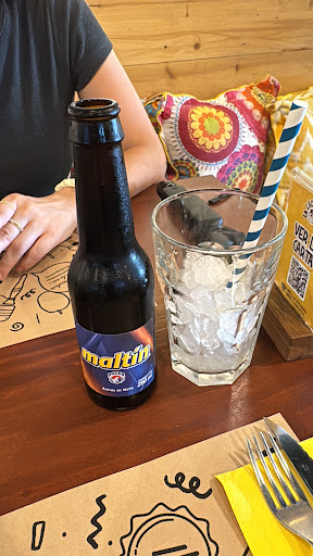 Food wise, it really was nothing to write home about. I grew up eating cachapas, platanos fritos, nata, you name it. But it really was all just very bland. The plantain was not even sweet and tasted pre-fried, tasteless shredded cheese, the cachapa with the 3 dots of tartare sauce on the side (?) and supposedly the star of the entire meal) was really just okay (a nub of butter or margarine would have been nice). The only item that had any flavor whatsoever were the chicken tostones or patacones. The Maltín Polar was nice too.