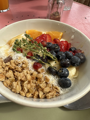 We had to wait for a pretty long amount of time, because they only allow 2 people at a time inside (which I found pretty odd), but I guess I can’t argue with this place’s policy. I’m sorry to say this, but the whole place was soo dirty. I was quite worried that even the food might be dirty. We sat at a table and got served relatively fast. The yogurt with granola was really good. Besides that, we got a jamon sandwich and also a strawberry avocado toast. Although, on the menu clearly states that this toast has feta in it, they brought with cottage cheese instead, without announcing it. It was still pretty tasty, but I think it’s better to acknowledge the customer about the change of ingredients, before actually bringing it. Anyway, the food overall was good, the only thing that disappointed me, was the cleanliness. Everything there was soo dirty, even the cutlery. It’s such a shame for it to be this dirty, because the design outside it is really pretty. I loved the flowers and the pink tables. I do have high hopes for this place, and hopefully, the next time I come back, this place will have improved their...