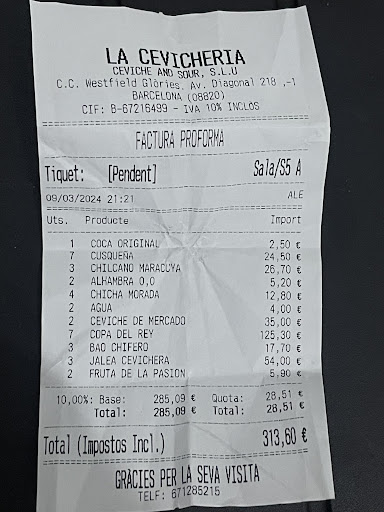 Read moreVisitado 4 veces desde que abrió, y, no puedo dar buena puntuación. En sala tienen un problema con el personal, porque entre la mala atención, falta de interés, falta de consejo e información al cliente persiste. Esta última vez que estuvimos el 21 de junio nos sirvieron dos chaufas con el arroz poco graneado y si con pelotas de arroz que imagino que no lo saltearon correctamente. En cuanto al ceviche puede ser mejor o peor, pero la sazón es importantísima y he visto algún ceviche con palta?, en mi caso no me lo han servido nunca con palta, pero si coincido con algún que otro comentario que he leído en que quizás le falta más sazón que no cocción. También me parece criticable servir la chela fría para que se acabe calentando puesto que el servicio no es que sea lento, es que parece que viene con "rodalies". En otras ocasiones el fallo que han tenido es que no tenían postres por los motivos que quieran pero me parece que falta comunicación entre el personal de cocina y el de sala puesto que nos hemos encontrado sin postres cuando previamente nos habían comunicado que si tenían. Sea como fuere, los postres, cuando tienen, están muy bien y merece la pena comerse un postre allí antes que comer cualquier dulce que sirven en el centro comercial donde se encuentra este restaurante. Solo puedo decir que la primera vez nos sorprendió gratamente, pero solo fue una gota en un océano después de haber estado ya 4 veces. Coincido en otros comentarios respecto al chicharrón de pescado, el cual lo he probado y coincido en que parece más un pescado apanado que un chicharrón correctamente ejecutado donde el crunch debe ser prioritario y nosotros no lo hemos encontrado; en cambio en la jalea si parece que se lo trabajan más, aunque su versión es muy peculiar puesto que en Perú nunca he encontrado jalea con los caparazones de los choros, pero si de las conchas de abanico. Así que imagino que es su versión pero bajo mi punto de vista es incómodo a la hora de comer. La esperanza nunca se pierde, quizás por eso hemos ido 4 veces pero sería ingenuo por mi parte repetir una quinta vez. Una de las veces que fuimos fue por la pandemia, y cuando les escribí explicando mi malestar con la atención recibida argumentaron que el personal tenía que hacer malabares, que si había mucha gente, excusando la mala atención de sala y la falta de control de las medidas impuestas por sanidad. Desconozco que excusa pueden darme esta vez, seguro pueden poner en duda mi experiencia, seguro que hay muchas personas que les ha pasado lo contrario y otras que se han sentido como nosotros. El caso es que uno repite en un restaurante porque le gusta, porque espera encontrar una mejora, porque alberga la esperanza de encontrar eso que tanto echa de menos de su segunda patria, la atención, la sazón, la amabilidad..., pero al final cuando encuentra decepción en vez de todo lo que espera o busca es mejor aparcar esa opción que tantas expectativas generó al inicio y que se han ido evaporando. Deseo que esta crítica u opinión sirva para mejorar, al menos las deficiencias que he considerado en cuanto al servicio y atención puesto que en la cocina la sazón cada uno sabe como trabaja y hacia donde quiere ir e interpretar la cocina, exceptuando que el arroz no salga graneado. Deseo que sigan siendo un lugar para dar a conocer un poco de Perú a la gente que no lo conoce, y lamento mi mala experiencia con ellos pero después de 4 visitas y siendo 3 de ellas desfavorables no creo que vuelva...