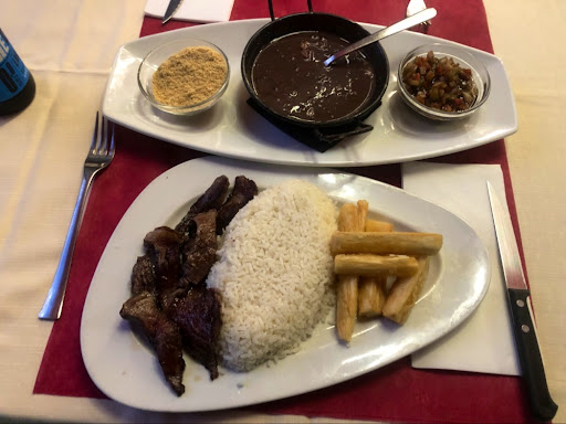 I got chocked when my dish arrived. On their menu says that the ‘combinado’ dish comes with a real picanha steak alongside of rice, beans, vinagrete and casaca chips but what I got instead was a few strips of cold meat strips, oily casava chips and left over beans.