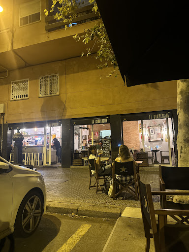 Read moreBuen sitio para cenar de tapas (tambien hay menu de mediodia) mi novia y yo pasamos por delante un viernes y ya nos lo habian recomendado, preguntamos e increiblemente habia mesa! Una carta simple pero bueno, mejor que tener una carta inmensa y no llegar a todo... Ademas varias sugerencias a parte de la carta Probamos la burrata, las comparsitas, las agujas de pollo y el cazon Las raciones estaban acordes a su precio y para nosotros eran de buena calidad, eche de menos algo mas de pollo, pero se de buena mano que su preparacion no es de 2 minutos Muy origoninales las comparsitas unas bravas hechas con patata y boniato con una salsa arromescada Lo mejor el cazon, con una base de mayonesa de ajo y perejil y espolvoreado con pimentpn dulce, para mi fue top ese plato, muy bien hecho y muy gustos Postres basicos tarta de queso y brownie, por decir algo mejorable dire que el brownie sabia mas a coulant que a brownie, pero ambos son de chocolate y dudo mucho que alguien se queje de eso La atencion y el servicio inmejorable, una chica muy maja y muy...