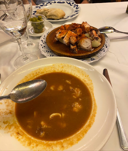 Last day at Barcelona! We loved the part-time guy singing but the volume was a little too loud and we couldn’t have a conversation. Unfortunately the table were we were seated had a lot of people coming and going and my seat was pushed around by a passing waiter. We really enjoy and eat seafood regularly so we excitedly order our dinner. The bread that they gave us as we sat down was to pay and we didn’t know that until at the check because €4. Let’s talk about the flavors! The soup was extremely salty.. the octopus was a let down because both the octopus and potatoes underneath it didn’t had any flavor, we could only taste the oil that we added (that was found on the table). The mix of seafood had SO LITTLE meat plus we can positively tell you that we ate quite a bit of sand in 2 razor clams. Me and my friend were ready to split the check but the waiter went directly to my friend, maybe because he’s a guy.. We were caught off guard when the waiter asked how much tip he was going to give and he wasn’t joking. The check came €77,40 are we were willing to give €80, so my friend say that we were going to pay €80, but the waiter insisted that the minimum for him is €5 and kept exclusively talking to him, that’s when my friend felt a lot of pressure at looked at me as a help sign, so I spoke up, asking if €80 was ok, but nothing, the waiter didn’t even looked at me even if he clearly heard me, he stood there pressing my friend to give more for what seem hours.. we were forced to tip him a number that was of his liking. I sincerely hope that you’ll think more than twice before coming here spending your money and your...