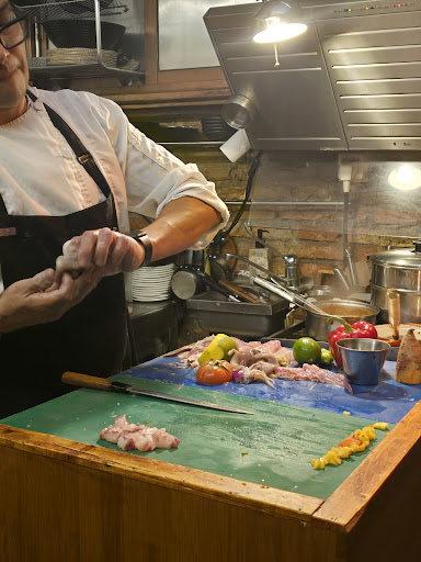 The kitchen is in the dining area, so you can see the chef's masterful work close up. He carefully inspected every piece of fish, every vegetable, every plate before it was served.