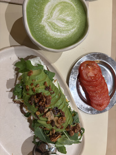 Read moreI loved my brunch at La Papa. The first time I visited it was 2021, and I went to another location back then. I am a sucker for good aesthetics brunch places with a clear concept, and I couldn’t have been happier. First things first, I had to work, and I was happy to see that they had a dedicated area for solo people, which doesn’t impede large groups to enjoy their time. It’s a win win. Secondly, the have some sockets, and although tables are small, they are enough if you have a laptop and don’t need to work with a lot of stuff. Now the food: my avocado toast was a complete meal, boasting a generous creme cheese layer, with some scrambled eggs, enough avocado on top and granola, whose sweet kick was truly a nice addition to this bread. The avocado toast also comes with a poached egg for some extra proteins. I also got a matcha and was very happy to see they had soy milk (I believe it had a vanilla flavour). Matcha was of a good quality, nice vibrant green, and truly big. I loved the plates, matching the cups in a nice minimalistic style - also for sale, alongside other merch such as coffee and T-shirts. The price was decent considering the location and the full meal I had. On the side I also got some really tasty tomato, which came with some extra sea salt.