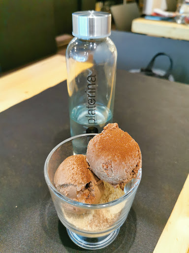 Read morePoco a poco Mercé y yo vamos explorando los cientos de restaurantes muy buenos que existen en Barcelona, La Platerina es uno de ellos. Situado en Vía Augusta y próximo a Travesera de Gràcia es de esos locales que deseábamos ir desde hace algún tiempo. La elección fue más que acertada. Reservamos mesa y la verdad es que la satisfacción fue plena. Excelente atención, comanda de mucho nivel y ambiente climatizado y digno para este calor que vuelve loco a cualquiera De primero, para abrir boca, pedimos un pan de coca con tomate exquisito, unas patatas bravas de las que te hacen sentir mega catalán y unas croquetas artesanas de ibérico y pollo que saben a gloria. Impresionante apertura de una comida impecable en su presentación, aroma y sabor genuino. Cómo no podía ser de otra forma el vino forma parte indisoluble de un yantar delicioso. Carta variada en la que nos decantamos por un Ribera del Duero, Abadía San Quirce, 2021, excelente cosecha que a pesar de sus 14,5 grados sentó de maravilla como maridaje de lo que vino después. Costilla de cerdo en salsa barbacoa con una guarnición de patatas peludas y pimientos de padrón y pulpo a baja temperatura con parmentier de patata fueron los ejes principales de una velada memorable en La Platerina. Ambas delicias de la gastronomía que brinda un establecimiento con una decoración acogedora. La velada festiva de domingo en este local la rematamos con helado artesanal de chocolate suave y elaborado con maestría!. Un postre aunque sencillo denota que en cocina se sabe muy bien como puede elaborarse arte puro. Muy complacidos y honrados de acudir a La Platerina que os recomendamos de corazón porque aquí encontrarás todo aquello que desees degustar en un ambiente tranquilo y sensacional. Regresaremos seguro con la familia que ya pide paso a reservar mesa para compartir una carta plagada de exquisiteces. Que tengan...