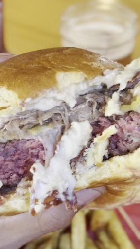 They told me that I couldn’t drink my own beverage in their establishment, even though I had already opened a 0.3L soda. It wasn’t friendly, I’ve never heard that before, but okay; I asked them to pack my order to go and left for the beach. My opinion is no longer related to this situation, which I would have overlooked if it weren’t for one of the worst burgers I’ve ever eaten in my life (on the Smash Burger menu). I’m not picky about food, but this was super greasy oil, burnt caramelized onions, and you’re just trying to bite into the meat to neutralize the taste of oil and sugar. There was an excessive amount of salt on the fries. It was just disgusting, I don’t know how much you’d have to dislike your body to finish that meal. Looking at the rating here, you even start to wonder if it was just bad luck with the chef today... But I have no desire to give this place a second chance.