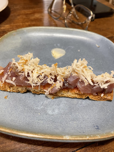 Read moreWhat a gem of a place. Above all, we are huge fans of the concept of the restaurant: a tasting menu that changes monthly, featuring Catalan flavors and ingredients that are locally sourced. Really warm and welcoming staff as well. We have visited before in late 2023 but we visited again recently for the April 2025 menu... it was great to see how the restaurant is growing and evolving! Overall it was such a fun and delicious meal. Highlights were the seasonal veggie dish featuring peas and asparagus and the most delicious sauce, as well as the beetroot and beef tartare dish that paired so well with a beurre blanc sauce.