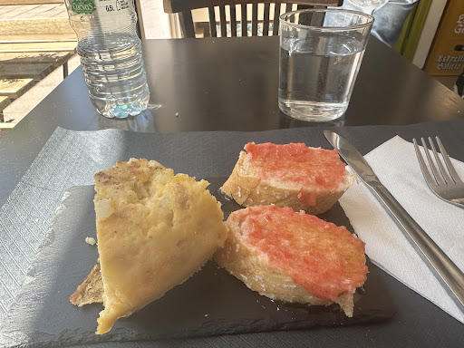 The tortilla was maybe microwaved, half cold, half hot. Still rich and hearty and filling like a big slice of potato and egg will be. Could've used a sauce, like a balsamic vinaigrette-type situation....