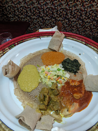 We started with the sambusa appetizer, which was quite tasty, but I think the fry oil was too cold, because they could have been much crispier and would have avoided the soaked-in-oil texture. I think we were the first customers of the night, so I get it, maybe the fryer wasn't up to temperature yet, but the sambusa suffered a bit for that. This was our only disappointment. The combination plates were really great; husband had the veggie, and I the chicken, and everything was lovely. I especially loved the spinach. The injera was some of the best I've had, and the portions were just right; I've often left Ethiopian restaurants absolutely hating myself for overeating, but in this case I was full but not uncomfortable. The desserts seemed not house-made, but quality anyway.