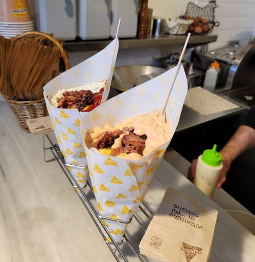 It is a nice place run by nice people but it is overrated in my opinion. It may be because my expectations were very high since I always watched the videos on social media reels on Instagram how delicious the fries are how incredible the sauces the cheese meat and spicy sauces. It skyrocketed my expectations. I tried spicy patatos with meat and cheese. Cheese and meat are my favorite food alongside with fried patatos so this combination is my ultimate favorite food plate. I cannot say it was not good but that was far away from what I expected. I guess the main disappointment comes from the fries if they were a bit crispy it would be much mire delicious. Unfortunately they were fried obviously long time ago and heated just before and they soaked oil so it wasn't good fries. Cheese and meat crumbs were nit enough to save the day. My humble recommendation would be making meat crumbs bigger and certainly crispy fries. Just a small additional there is no place to sit it is...