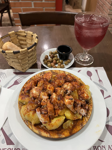 Simply delicious. I just arrived Barca and was starving so just googled for nearby places to eat, and saw this place like 70m around so I decided to check it out. It’s a cozy little restaurant that feels like home. The lady who took my order is absolutely lovely and very quick and efficient with her tasks, I was amazed with how fast she moved! I knew I wanted the octopus from previous reviews so I just tried it out, super delicious even though it’s simply just potatoes and octopus complimented with salts and chilli powder. I wanted sangria but guess summer isn’t here so no sangria 😅 the lady suggested me something else which is similar and just as fresh and nice. Absolutely...