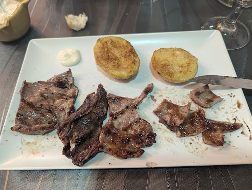 Read moreMi opinion de este restaurante podria ser discutible si se tratara de una opinión subjetiva respecto a la comida que nos han ofrecido este mediodia pero cuando la opinion esta basada en la evidencia poco se puede decir al respecto. Si vas as comer un menu del dia, te cantan el menu del dia eliges lo que te cantan y no te sales de del menu del dia lo normal es que te cobren el menu del dia, tu sopresa es a la hora de pagar que la cuenta se incrementa en un 40% por que cobran los platos que ten han cantado como menu de dia como platos de la carta. La queja expresada a la propietaria se resuelve con "es que esos postres no eran del menu" y te hace una cuenta chapucera con un boligrafo en un papel te "arregla el precio" hasta llegar "solamente a un 25% por encima del menu y con esto date por contento. Lamentable experiencia y peor si cabe la actitud de la propietaria. De la comida para el precio que se cobra en el menu podria recomendar sin andar mucho mas de 5 minutos desde ese restaruante una docena del mismo nivel o superior. Evidentemente el resultado final es las brasas del tio...