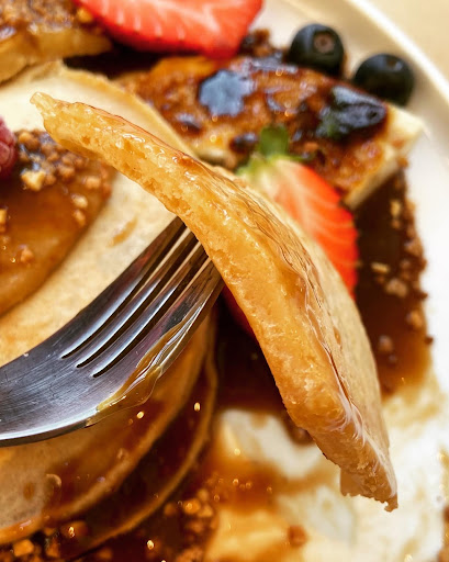 Read moreHad the most amazing time here! We came for the eras tour menu (wildest dream iced latte and lover iced latte with added shots of espresso) and left feeling like we’re in our fearless, 1989, lover, and all the happy eras 🥰 the caramelized banana pancakes were delicious and the clubhouse waffle was so yummy, the mix of danish cheese and fluffy eggs and cilantro mayo will live in my head rent free for the next couple of months. And to top it all off, Miguel took amazing photos of us and hyped us up our whole meal!! Can’t forget the best brunch partner, Mr. Bear (and of course my bestie Lia) 🧸🫶 Definitely a must visit if you’re adventuring through passeig de gracia/universitat area!